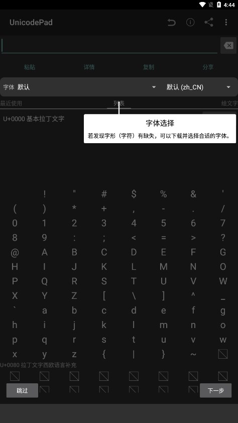 点击右上角的三个点图标,即可进入设置界面,轻松调整软件的各项参数。软件内置丰富的字体库,您可以根据需求自由选择合适的字体。通过码位自定义功能,您可以快速设置所需的字符范围,提高输入效率。此外,软件还提供详细的使用指南,帮助新手快速上手。