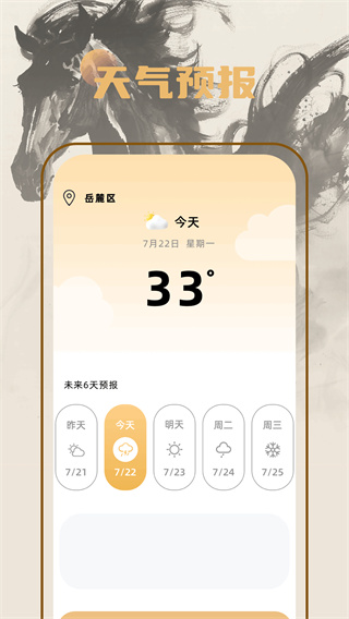 内置实时天气预报系统,提供未来7天的精准天气预测,包括温度变化、降水概率等详细信息,帮助用户提前做好出行准备。