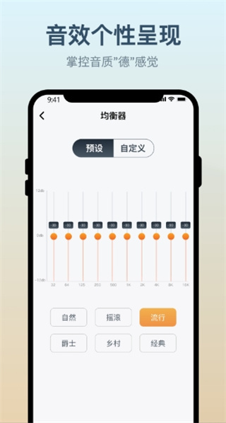 小质耳机app内置了专业级的音效调节系统,提供包括流行、摇滚、古典、爵士等在内的多种预设音效模式。每种模式都经过音频工程师精心调校,能够完美呈现不同音乐类型的特色。对于追求个性化的用户,app还提供了专业的EQ均衡器,支持对各个频段进行微调。用户可以根据自己的听觉偏好,保存多个自定义音效配置,在不同场景下快速切换使用。