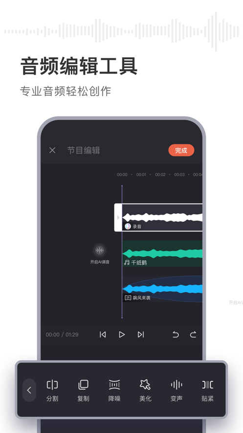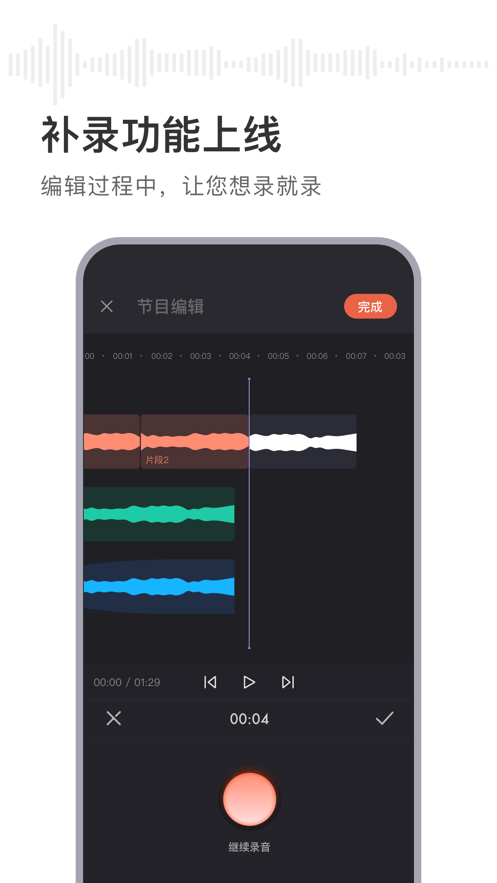 本次更新带来了多项实用功能升级:新增的补录功能让音频编辑更加灵活自由,创作者可以在编辑过程中随时补录需要调整的部分;全新升级的草稿箱支持多步骤同步保存,确保创作过程的安全可靠。这些改进进一步提升了创作体验,让内容生产更加高效便捷。