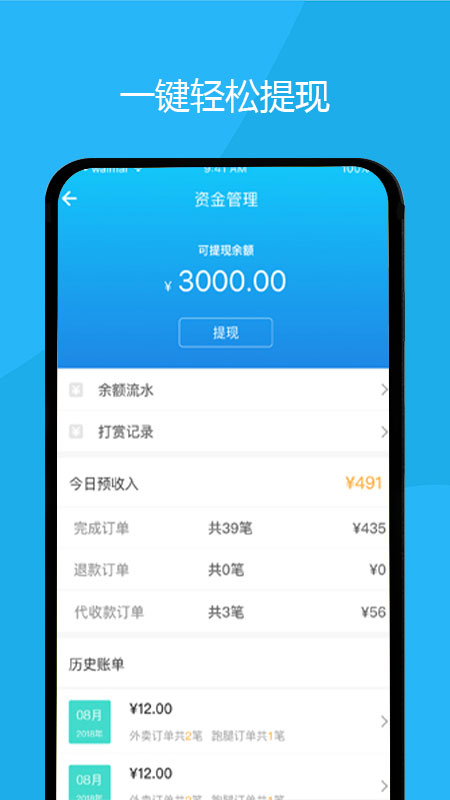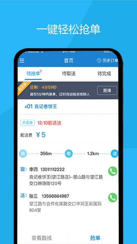一键轻松抢单,帮助骑手快速获取订单,提高接单效率;功能列表设计简洁醒目,操作直观,让骑手能够快速上手;一键轻松提现功能,确保骑手收入能够及时到账,资金流转更加便捷;收入统计清晰明了,骑手可以随时查看自己的收入情况,方便进行财务规划。此外,软件还支持多种订单管理功能,让骑手的工作更加高效。