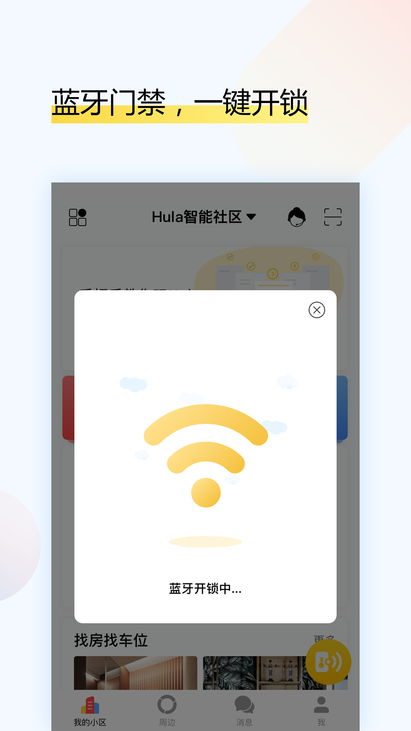 蓝牙门禁,一键开锁:采用先进的蓝牙技术,只需轻轻一点即可快速开启小区门禁,告别传统钥匙的繁琐;