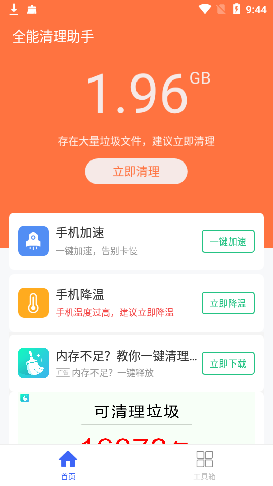 全能清理助手app,您手机专属的清理大师,致力于为用户提供高效、安全的手机优化体验。这款软件集成了多项实用功能,包括手机加速、手机降温、通知栏清理以及手机病毒查杀等,全方位保障您的手机性能与安全。无论是日常使用还是关键时刻,全能清理助手都能帮助您轻松应对手机卡顿、存储不足、发热等问题,让您的设备始终保持最佳状态。立即下载,体验流畅如新的手机操作感受!