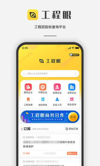 工程眼APP是一款专为工程行业打造的智能招标查询工具,致力于为建筑企业和从业人员提供全方位的工程信息服务。通过大数据分析和智能推送技术,该软件整合了全国范围内的工程招标信息、企业资质数据和行业资源,帮助用户快速获取项目机会、拓展业务人脉。无论是工程项目的全流程追踪,还是建材设备的精准匹配,工程眼都能为用户提供高效便捷的数字化解决方案,成为工程从业者不可或缺的得力助手。