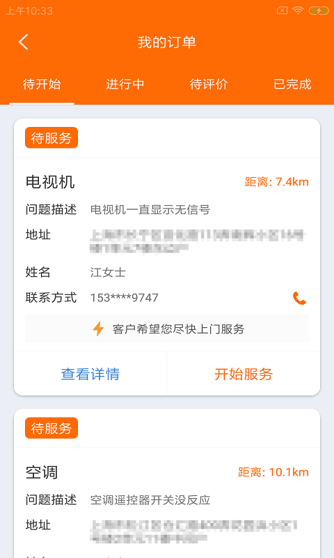 师傅可以在APP接收系统派发订单,系统会根据您的位置和服务范围智能推送附近订单。师傅可以在APP联系客户并确认预约时间,内置即时通讯功能让沟通更便捷。师傅可以在APP进行到达(到达客户住址)和延期(与客户更改预约时间)操作,所有操作都能一键完成。此外,APP还提供收入统计、客户评价查看、服务范围设置等实用功能,全方位满足您的业务需求。