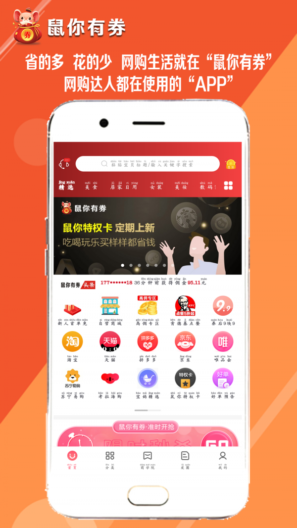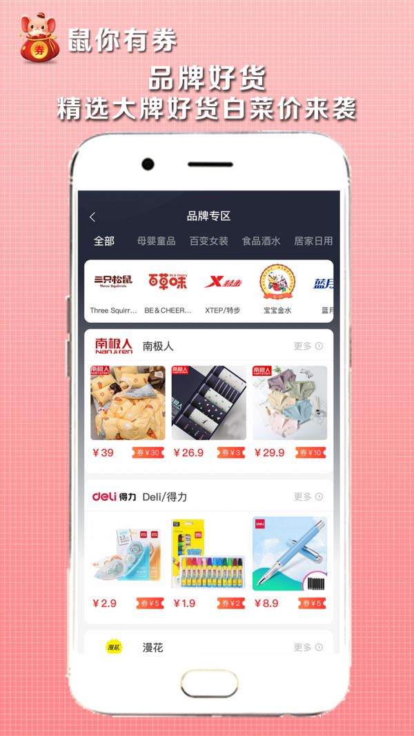 《鼠你有券》是一款专为网购达人打造的优惠券聚合平台,拥有海量优质商品和超值优惠券资源。如果你是一个热爱网购的消费者,每个月都会将大部分工资花在购物上,那么这款软件绝对是你的省钱利器。鼠你有券app每天都会更新数万张优惠券,涵盖服饰、美妆、数码、家居等全品类商品,用户可以自由领取使用,没有任何门槛限制。更重要的是,平台上的所有商品都经过严格筛选,确保正品品质,让你买得放心、用得安心。