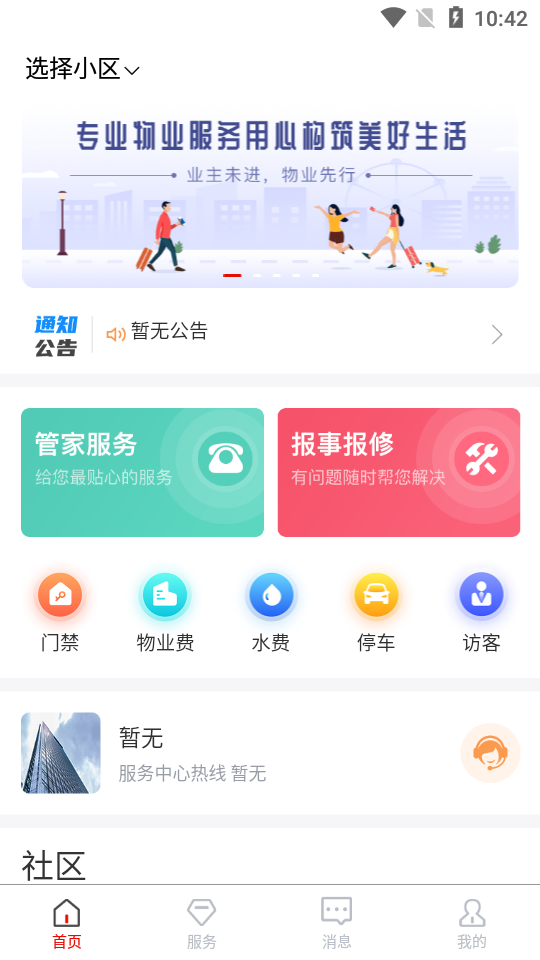 访客管理功能可提前预约访客并生成电子通行证,装修申请在线提交审批,社区公告实时推送。