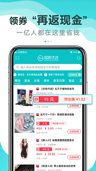 双重省钱机制:独特的"领券+返现"模式已经帮助上亿用户节省开支,让每一笔消费都更超值。