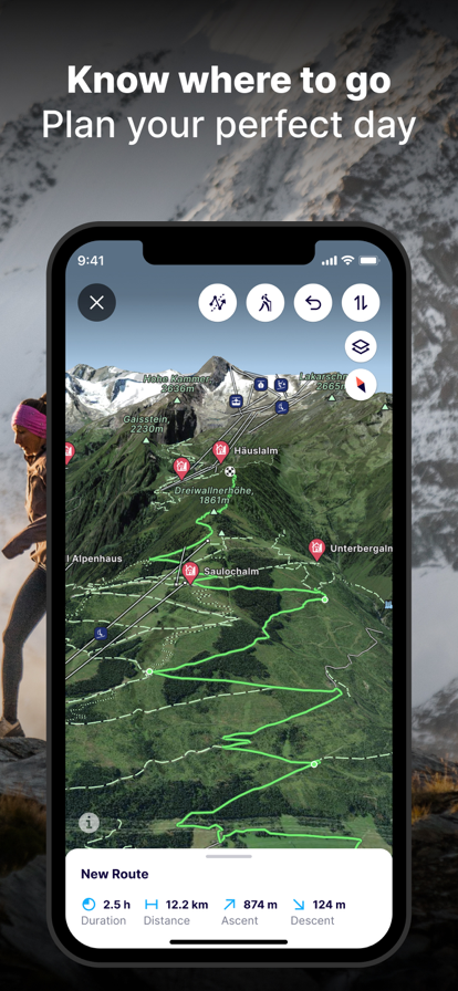 地图提供季节性的地图图像选择,根据个人出行时间、交通方式等偏好,智能推荐最适合的解决方案。无论是骑行、徒步、跑步还是滑雪,都能获得精准的逐步导航指引,配合离线地图功能,确保你的冒险之旅万无一失。用户可以自由创建和分享自定义位置标记,轻松规划下一次高山探险。公交导航功能覆盖多个城市,提供精准的到站提醒服务。