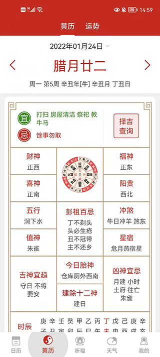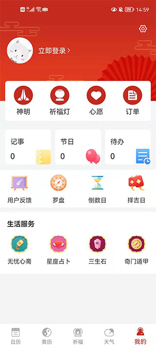 日历:除了简单的日历表以外,该软件还提供了节日提醒等特色服务,让您不错过任何重要日期。黄历:用户们还可以在万年历app中查询老黄历2022年的黄道吉日,了解每日宜忌,为重要活动选择最佳时机。运势:用户还可以在这里查阅一些关于星座的运势以及背景故事,探索星座与生活的奇妙联系。祈福:用户还可以在这里祈祷一些工作、学业、婚姻、家庭等,寄托美好愿望。天气:该软件还支持查看未来的15-40日之内的天气,让出行更加方便,提前做好规划。我的:除此之外,软件中还有星座占卜、三生石、奇门遁甲等特色的生活服务,满足您的多样化需求。