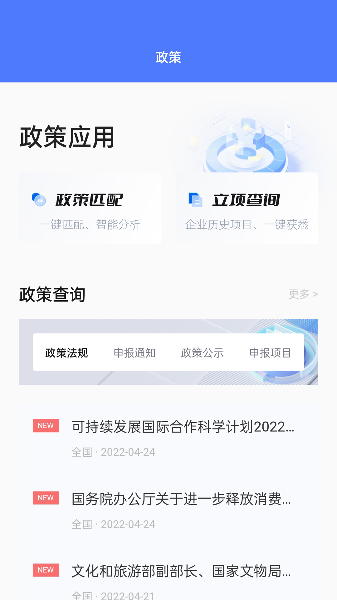 博士云app是一款集国家政策查询、企业政策解读、项目申报指导于一体的综合性政策服务平台。该应用汇聚了全国各级政府部门发布的产业扶持政策信息,通过智能化的信息推送和专业的政策解读,帮助用户第一时间获取最新政策动态,实现政策与需求的精准匹配。无论是初创企业、中小企业还是大型集团,都能在这里找到适合自身发展的政策支持。