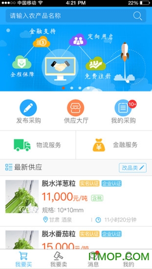 农厂汇是国内领先的大宗农产品交易服务平台,专注于为农产品采供双方提供高效、便捷的交易解决方案。平台通过智能化的信息匹配系统,帮助用户快速找到合适的交易伙伴。农厂汇不仅提供免费的撮合服务,还支持货到付款、质押配资等多种交易方式,满足不同用户的多样化需求。此外,平台还贴心地提供帮忙找车等增值服务,真正实现一站式全程交易支持。农厂汇始终秉持"让交易更简单"的理念,不断优化服务流程,降低交易成本,提升用户体验,让每一笔农产品交易都能轻松完成。