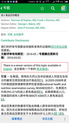 uptodate临床顾问app能有效提升医生的诊疗准确度和质量,帮助医生持续进步;多语言支持让全球医生都能无障碍使用;软件内容涵盖了临床常见的绝大多数疾病和问题;它能够快速解答医生遇到的疑难问题,提高诊疗效率;所有专题内容均由医学专家撰写,确保信息的权威性和可靠性。
