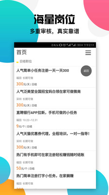 海量兼职岗位:兔牙兼职与众多知名企业合作,汇聚了各行各业的优质兼职机会。从家教、促销到文案写作、设计等专业技能岗位,应有尽有。平台每日更新大量职位信息,确保用户总能找到最适合自己的兼职工作。