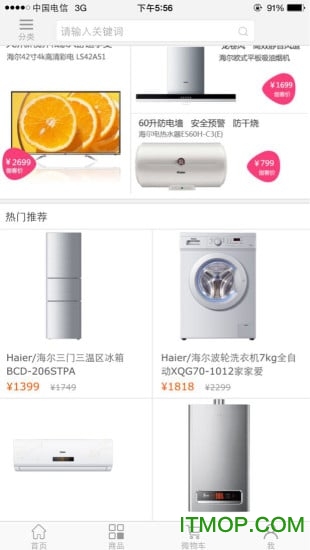全品类家电覆盖:商品分类涵盖洗衣机、空调、热水器、厨房电器、智能电视、电脑设备、小家电以及创新智能家电等海尔全系列产品,满足不同用户的多样化需求。