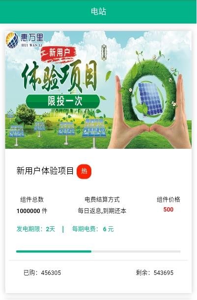 惠万里app是一款功能强大且极具创新性的新能源综合信息服务平台,致力于为用户打造全方位的绿色能源体验。作为行业领先的光伏发电项目整合平台,软件不仅精选了众多优质光伏电站项目,更为用户提供了从投资到运维的一站式解决方案。在这里,您可以深入了解光伏发电行业的最新政策导向、技术发展趋势和市场动态,通过简单的操作即可完成光伏电站的认购,享受长期稳定的收益回报。