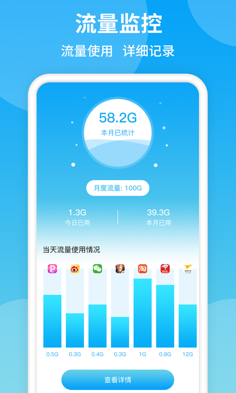 *流量监控:精准监控4G/5G移动数据使用情况,防止后台应用偷跑流量,帮助您合理规划流量使用;