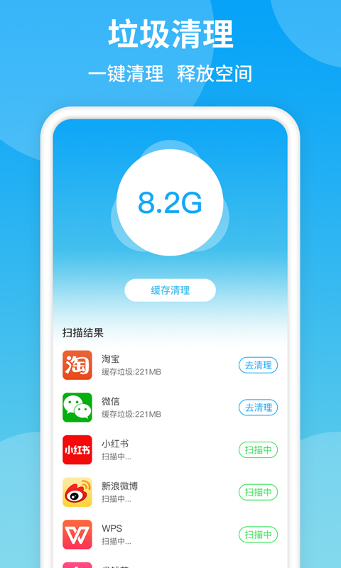 *清理管理:一键清理手机应用缓存垃圾,释放存储空间,优化手机运行速度,提升设备整体性能;