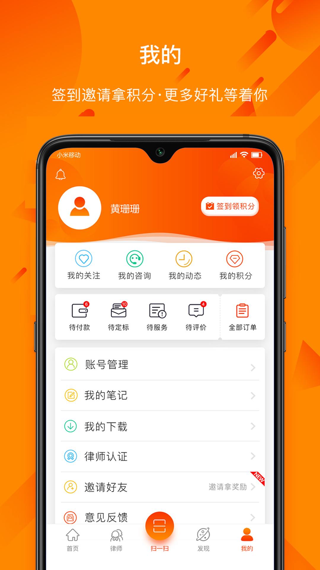 签到邀请拿积分,更多好礼等着你。用户可以通过每日签到、邀请好友等方式积累积分,兑换法律书籍、咨询服务等实用礼品,让学习法律更有动力。