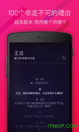 剧本功能提供上百种精心设计的通话场景,从工作紧急会议到家庭突发事件,总有一款适合您的需求;