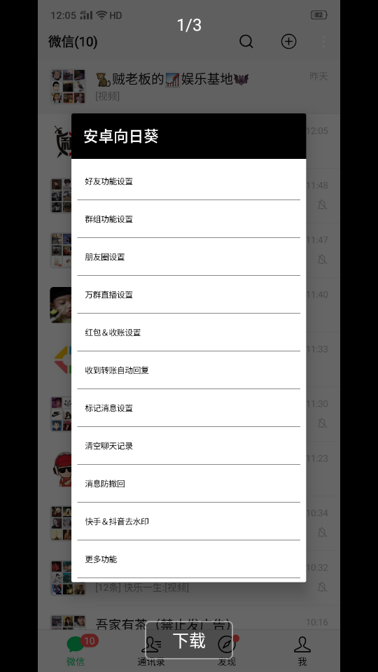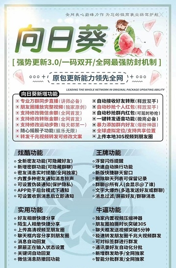 安卓向日葵工具是一款功能强大的微信辅助插件,专为提升微信使用体验而设计。它集成了多种实用功能,包括微信多开、自动抢红包、信息群发、微信修改、防撤回等,操作简单便捷,只需下载安装即可立即使用。无论您是普通用户还是需要管理多个微信账号的专业人士,这款工具都能满足您的需求,让微信使用更加高效便捷。
