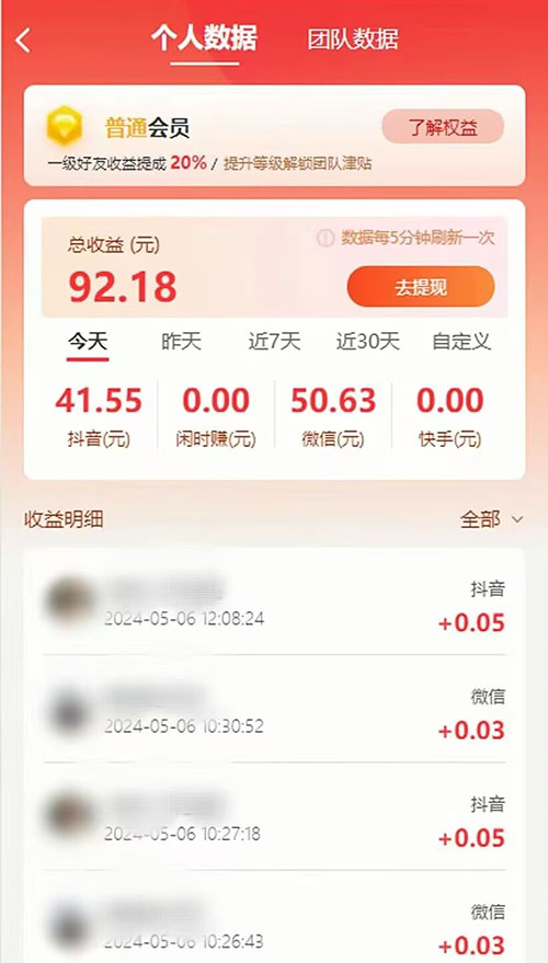 平台独创"一元永久提现"政策,打破行业高门槛限制。邀请好友机制奖励丰厚,每成功推荐一位用户可获得18元现金奖励,上不封顶。双端运营模式支持抖音和视频号同步托管,配合智能任务分发系统,可将传统收益提升百倍。平台还提供专业的数据分析工具,帮助用户优化账号运营策略,实现收益持续增长。
