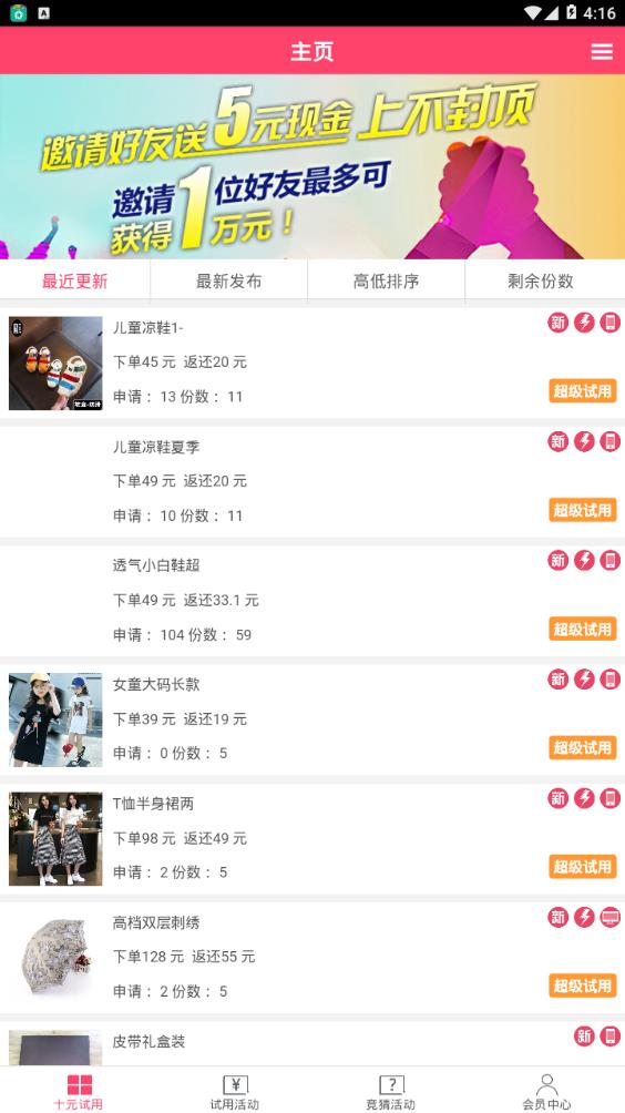 第一试用网APP作为官方推出的移动端应用,为试客打造了便捷的免费试用平台。在这里,用户可以轻松申请淘宝、天猫、京东等主流电商的高品质试用品,享受"先试后买"的消费体验。通过参与试用活动,不仅能零成本体验心仪商品,完成试用报告后还可获得平台奖励。该应用持续优化功能体验,简化申请流程,让每位用户都能高效参与试用并获取返利,是精打细算的网购达人不容错过的神器。