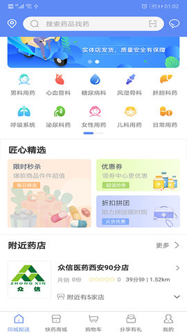 便捷找药:智能搜索系统支持药品名称、症状、适应症等多种查询方式,药品分类清晰明了,还有专业药师团队提供用药指导。
