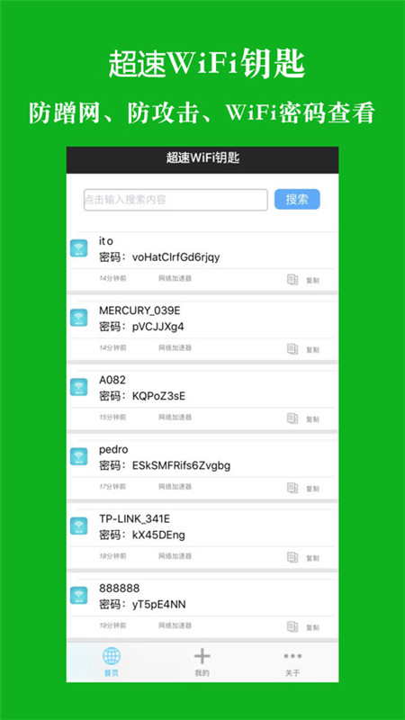 超速WiFi钥匙是一款功能强大且实用的上网工具软件,为用户提供全方位的网络连接解决方案。该软件集成了免费WiFi连接、智能网络测速、实时安全监测以及系统性能优化等多项实用功能,让您的上网体验更加安全、稳定且高效。无论是日常办公、娱乐还是学习,超速WiFi钥匙都能满足您的需求,操作界面简洁直观,即使是初次使用的用户也能轻松上手。如果您正在寻找一款可靠的上网助手,不妨立即下载体验!