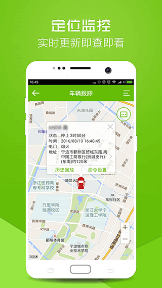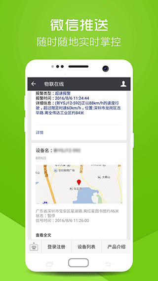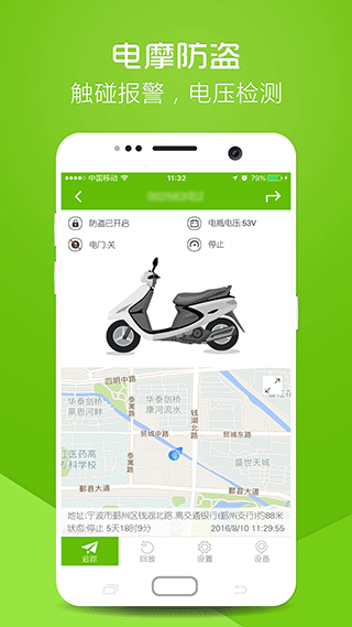 一键查询车辆位置,随手掌握车辆的实时状态,操作简单快捷,老人也能轻松上手;提供速度、围栏、区域等多种方式报警,借车给朋友更放心,可设置不同级别的报警阈值;根据电压检测,智能为您计算剩余续航里程,出行无忧,计算结果会考虑路况和驾驶习惯;多种报警信息提示方式,通过短信、微信等极速获取,确保重要信息不遗漏;地图上展示车辆位置,根据导航可以快速前往,支持主流地图应用的无缝切换;轨迹回放准确记录了行驶路线上的停留时间,信息展示详细,可精确到分钟级别的停留记录。