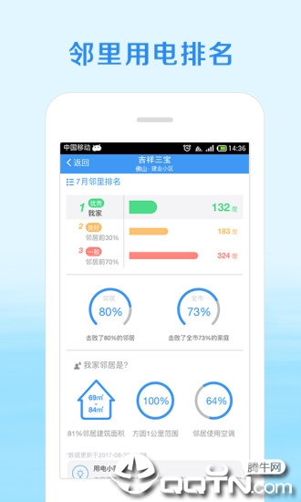 邻里排名功能让用户与周边邻里的用电排名进行对比,激励大家争当居家节能达人;