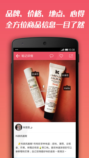 已经把小红书推荐给了我的诸多同事,反映那叫一个好啊!特别是最近要去香港出差的同事,都说这个app帮了大忙,不仅找到了购物地点,还省了不少钱。