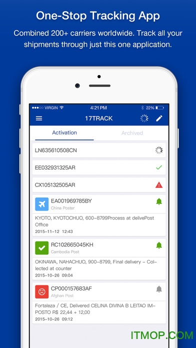 您是否经常为追踪来自中国或其他国家的在线订单而烦恼?17TRACK将是您的最佳选择!这款应用支持全球220多家物流运营商的免费查询,且全程无广告干扰,让您随时随地掌握包裹的最新动态。17TRACK是17TRACK.net的官方应用程序,作为全球最大的包裹追踪平台之一,它覆盖了170多个邮政运营商(如中国EMS、香港邮政、新加坡邮政、USPS、俄罗斯邮政等)以及众多国际知名快递公司(如DHL、FedEx、UPS、TNT等)。此外,它还支持主流的跨境电商物流服务商(如燕文、顺丰国际、DHL电子商务等)。如果您想了解更多功能,可以访问官方网站www.17track.net进行体验。