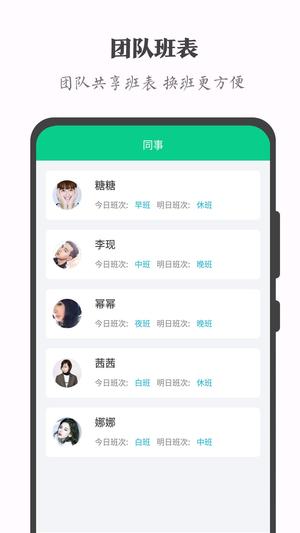 「同事管理」支持添加可爱的同事头像,记录联系方式,并完整保存每个人的班表历史。团队协作更加轻松便捷,调班换班一目了然。
