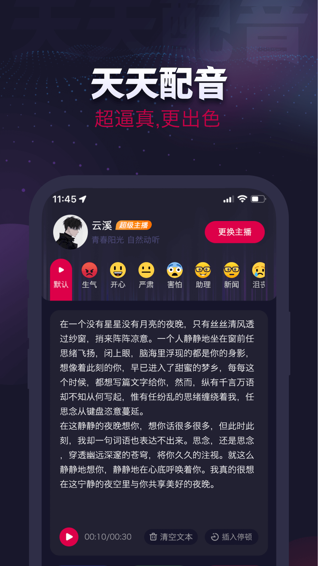 平台持续优化用户体验,最新版本新增多位精品主播,音色更加丰富自然。同时改进了语音合成算法,使发音更加流畅清晰,为用户带来更专业的配音效果。