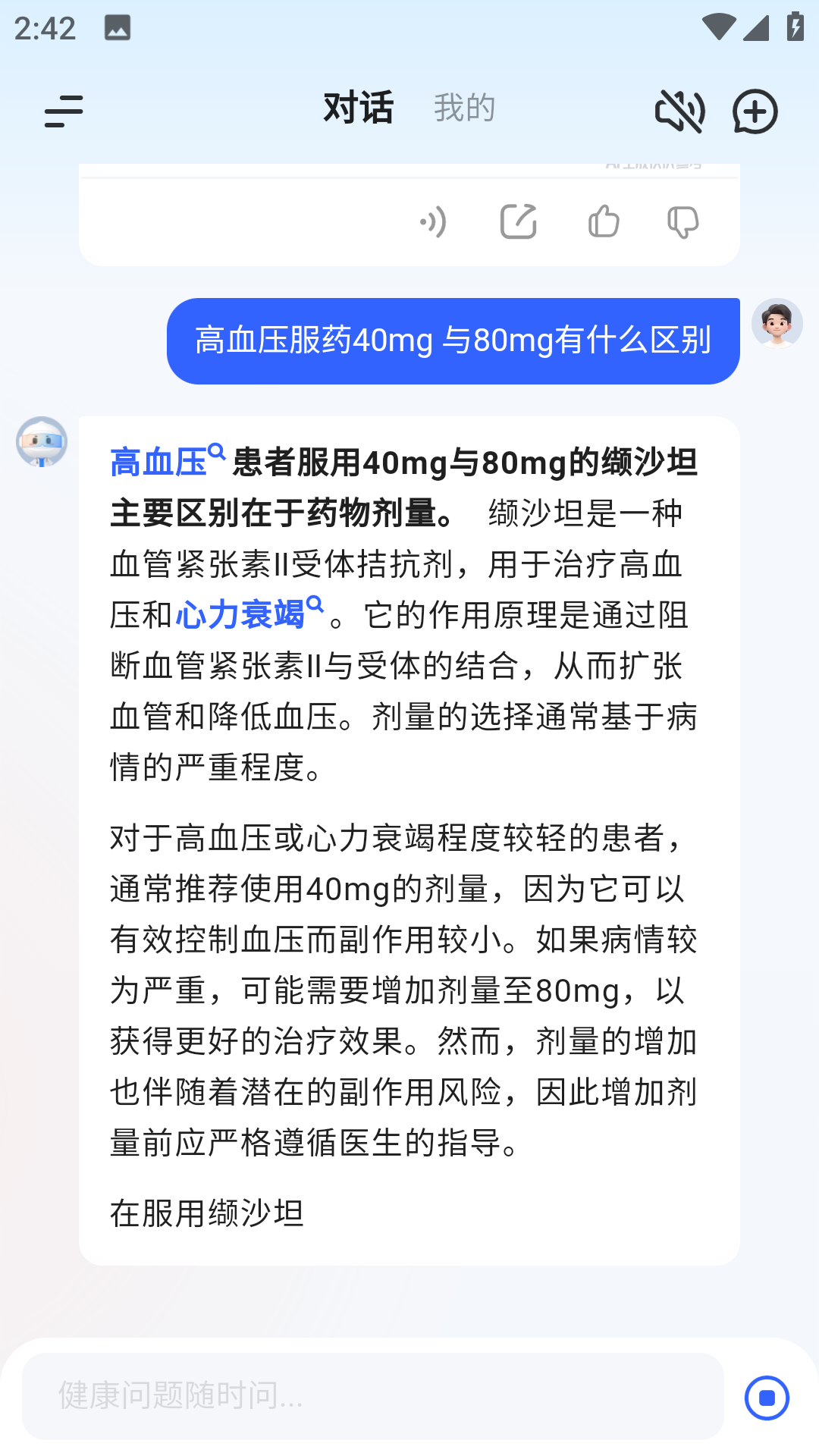 提交问题后,AI医生会立即进行分析处理,给出详细的解答和建议。除了文字回复外,系统还会提供相关的医学图解、用药说明等辅助资料,帮助用户更好地理解健康信息。
