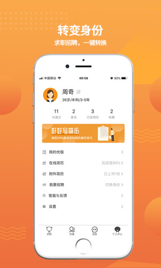 平台支持求职者和招聘方身份自由切换,满足不同场景需求;