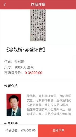 平台汇集了丰富多样的书画作品,涵盖国画、书法、油画等多种艺术形式,用户可以随时随地在线赏析。您可以关注喜爱的作者和卖家,第一时间获取新作品上架信息,方便查看和交易。平台定期推出超值拼团活动,折扣力度最高可达一折,让您以更优惠的价格收藏心仪作品。便捷的在线支付功能支持多种支付方式,让书画购买变得简单快捷。此外,我们还提供专业的作品鉴定服务和安全的物流配送,确保您获得完美的购物体验。