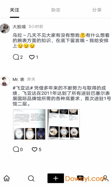 这里是表友们自由交流的天地,你可以分享自己收藏的珍贵腕表,记录与爱表相处的点点滴滴,或是讲述那些与腕表有关的难忘故事。平台支持图文并茂的分享方式,并设有点赞、评论等互动功能,让表友们能够轻松交流心得、互相学习。无论是日常佩戴体验,还是特殊场合的腕表搭配,都可以在这里找到共鸣。