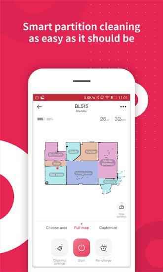 功能丰富的手机APP,支持地图可视化、实时更新、虚拟墙设置和预约打扫;