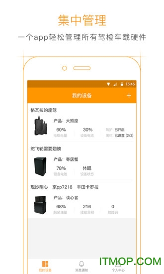 集中管理,一个app轻松管理所有驾橙车载硬件,界面简洁明了,操作简单直观