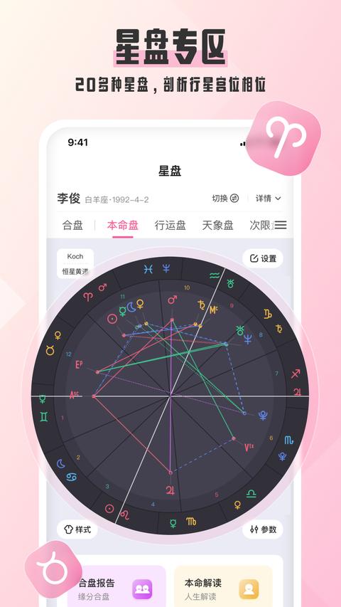 集趣味性以及专业性于一体,不管是星座运势、还是情侣配对、亦或是本命年吉凶分析等等,都能给你最靠谱的答案!让你和专属的占星师来一对一服务,轻松的了解到自己命盘当中的全部的信息情况,让你了解自己的变化。此外,平台还提供详细的星盘解读报告,涵盖行星位置、宫位分布等专业内容,帮助用户深入理解自己的性格特点和未来趋势。