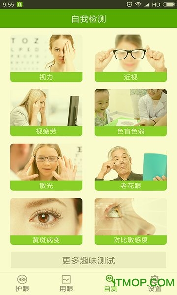 【眼病自测】内置专业视力测试功能,可快速检测色盲、色弱、近视等常见眼部问题,帮助用户及时发现视力变化,提醒就医检查。