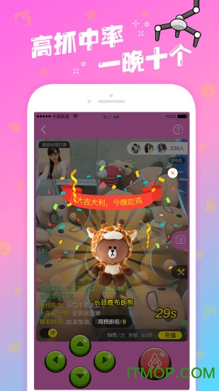 这是一款操作简单、乐趣无穷的手机抓娃娃应用。只需一键登录注册,就能立即享受新手专属福利。所有抓到的娃娃都会通过快递全国包邮送到你家,让你足不出户就能收获满满的快乐。软件采用先进的实时传输技术,让你在手机上也能体验到真实的抓娃娃乐趣。