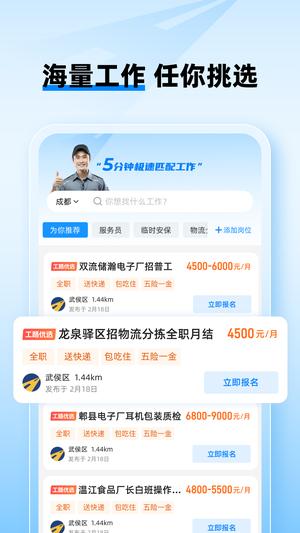 【招工快,当天到岗】企业招聘不再困难,一键发布职位信息,最快8分钟完成面试,当天即可到岗工作。平台特别适合急需用工的工厂、门店等企业,让招聘变得轻松高效。
