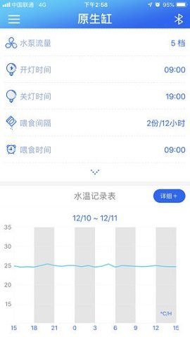 鱼悦智能APP是你鱼缸的医生,如果鱼缸有异常状况危及到生物生长,APP主界面上就会有相关提示,让你及时调整鱼缸状态。系统会记录历史数据并生成趋势图表,帮助您分析问题原因,预防潜在风险。专业的养鱼知识库还能为您提供针对性的解决方案,确保鱼儿健康成长。
