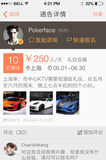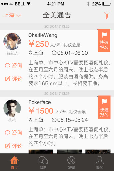 随时随地的发布与报名功能让工作对接更加灵活高效。经纪人可以随时随地发布兼职工作信息,艺人则能实时浏览最新的工作机会,确保不错过任何潜在机遇。经纪人还能实时查看报名情况,掌握应聘动态;而艺人只需一键发送简历,即可快速完成报名流程,大大提升了求职效率。