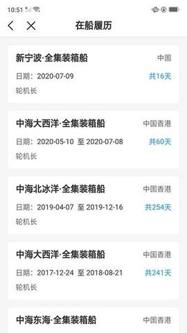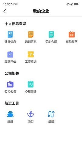 证书管理功能为船员提供了电子证书的云端存储和即时调阅服务,支持包括适任证书、专业培训证书等各类资质证明的查询。船员可以随时查看证书有效期、发证机构等详细信息,确保资质文件始终处于可用状态。培训查询模块不仅能显示当前培训进度,还能查阅历史培训记录和考核成绩,帮助船员系统掌握个人职业发展轨迹。合同管理功能实现了劳动合同的电子化存档,船员可随时查阅合同条款、签约日期等关键信息,保障自身合法权益。履历查询服务完整记录船员在船工作经历,包括船舶名称、任职岗位、服务期限等详细信息,为职业发展提供数据支持。