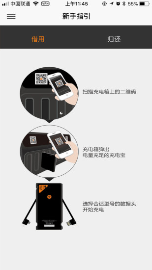 借-打开泡泡充电APP,扫描设备二维码,系统自动识别用户信息并完成认证