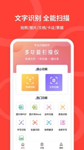 手机扫描仪免费版是一款功能强大且操作便捷的扫描识别软件,能够帮助用户高效处理各类文档和图片内容。无论是日常办公还是学习需求,它都能轻松满足用户对文件扫描、文字提取和格式转换的需求。该软件支持一键快速扫描,无论是纸质文件、名片、合同还是书籍页面,都能精准识别并提取文字内容,大幅提升工作效率。此外,它还支持多国语言识别,包括英文、中文、日文、韩文等多种语言,确保用户在处理外文资料时也能获得准确的识别结果。无论是学生、上班族还是自由职业者,这款软件都能成为您得力的办公助手。